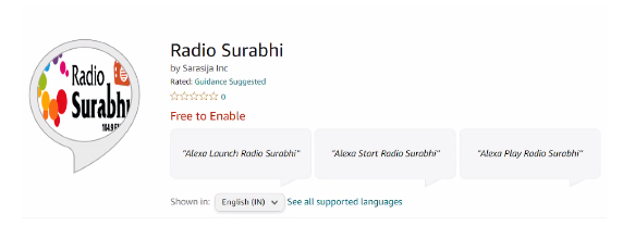 - As Radio Surabhi is the first American Telugu radio station on Alexa, the team had to do a lot of research and development to overcome the challenge. Now it works on all Alexa devices