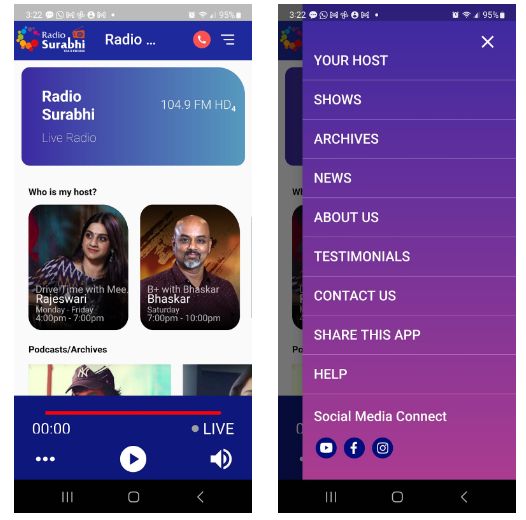 - Playing the radio continuously was a challenge that we faced due to different ios/android versions